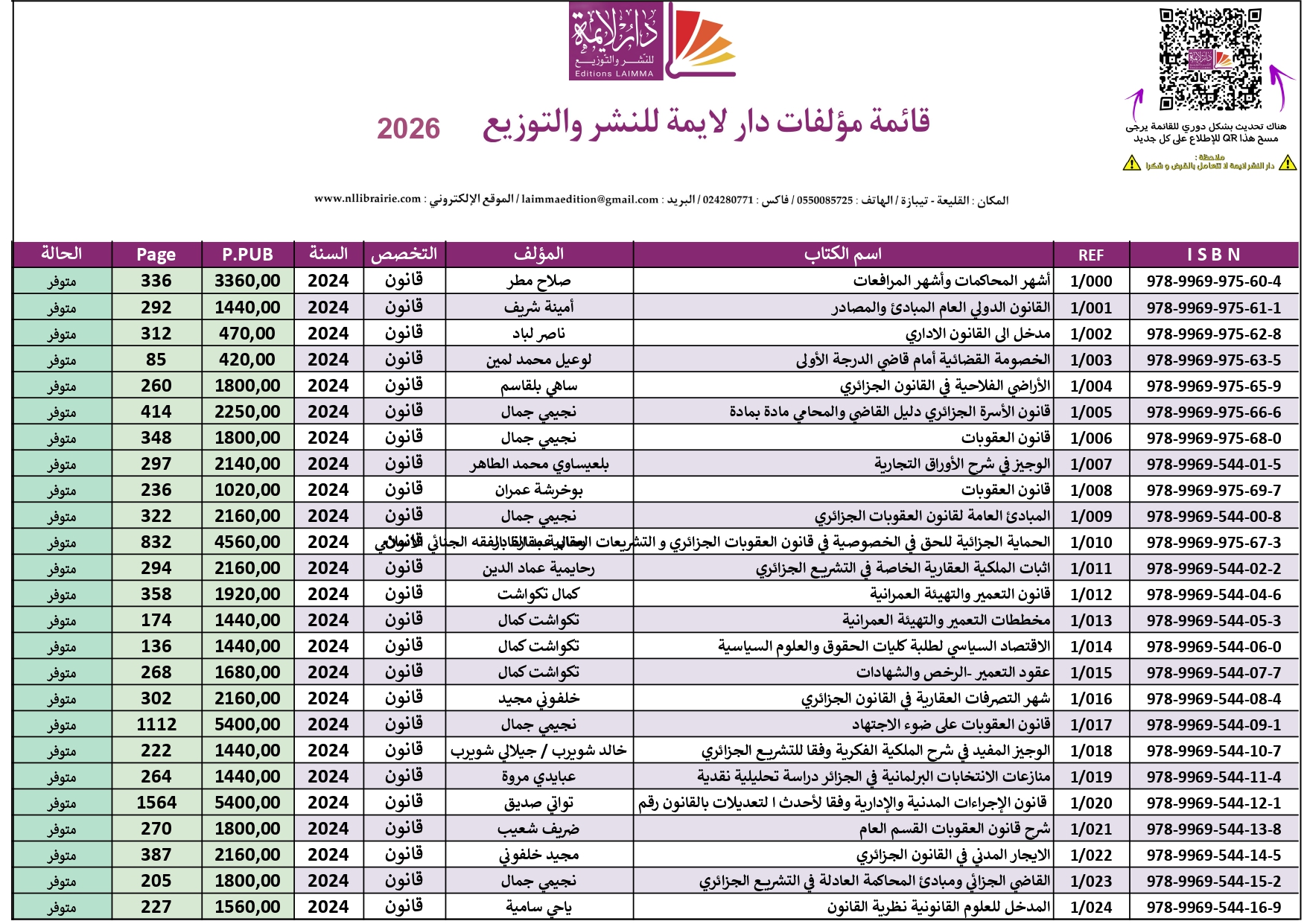 قائمة مؤلفات دار لايمة للنشر والتوزيع