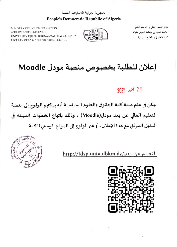 © جميع الحقوق محفوظة لدى كلية الحقوق و العلوم السياسية 2023 .جامعة الجيلالي بونعامة خميس مليانة