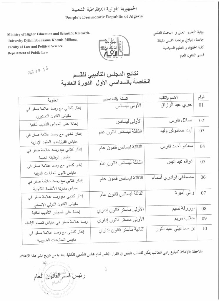 © جميع الحقوق محفوظة لدى كلية الحقوق و العلوم السياسية 2023 .جامعة الجيلالي بونعامة خميس مليانة