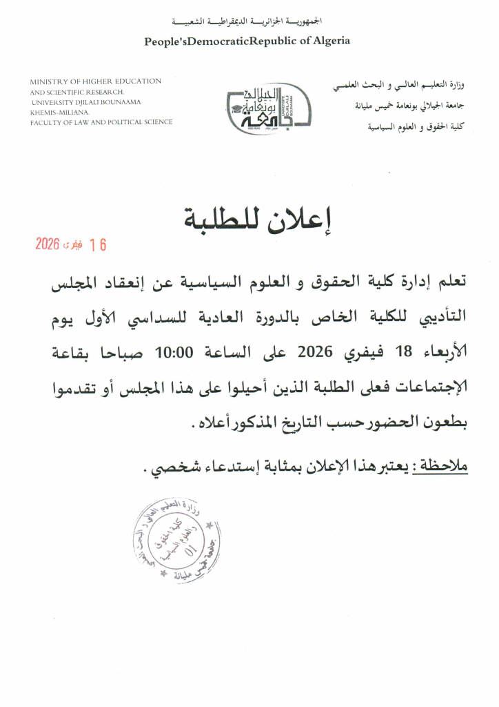نائب العميد المكلف بالدراسات و المسائل المتعلقة بالطلبة