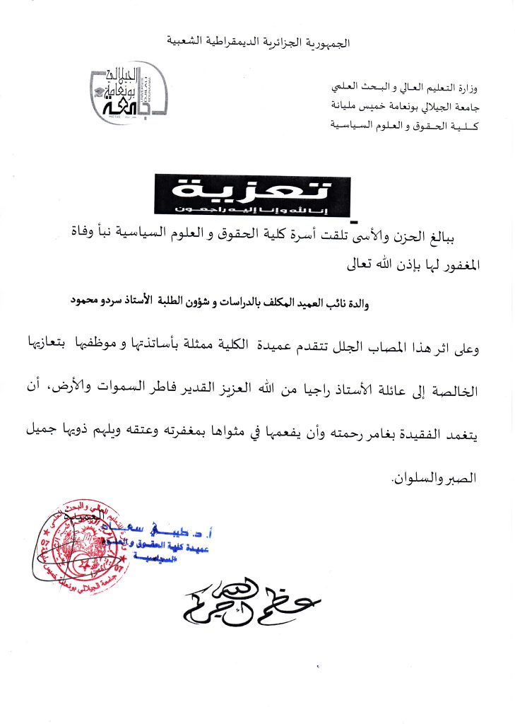 © جميع الحقوق محفوظة لدى كلية الحقوق و العلوم السياسية 2023 .جامعة الجيلالي بونعامة خميس مليانة