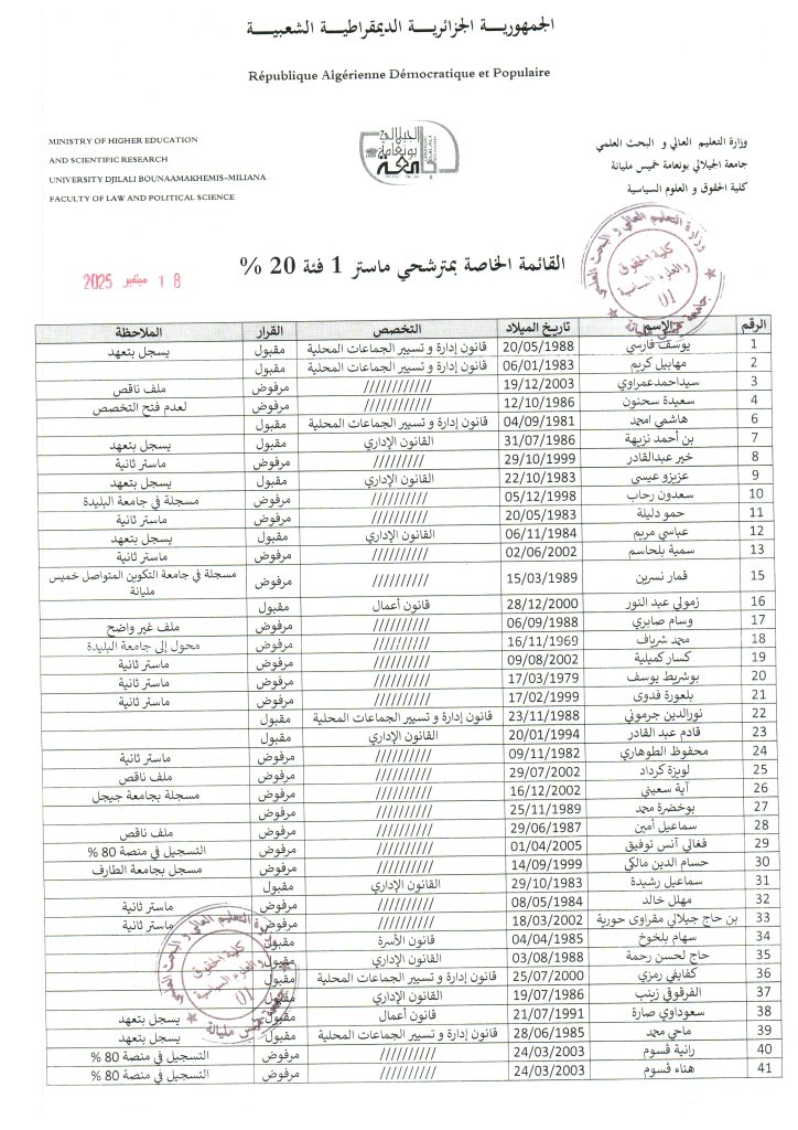 Results of the application review for Master 1 candidates 20% academic year 2025-2026 / غير مصنف / By webmaster