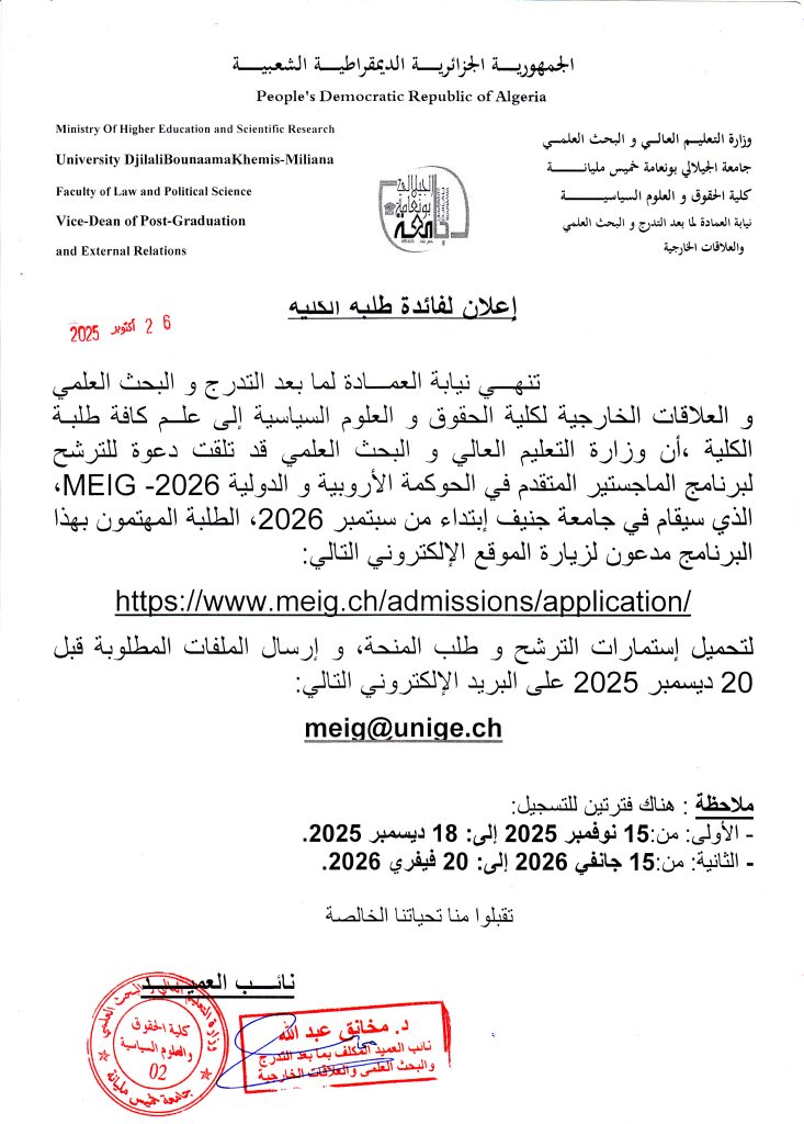 Vice Dean in charge of post-graduation, scientific research and external relations