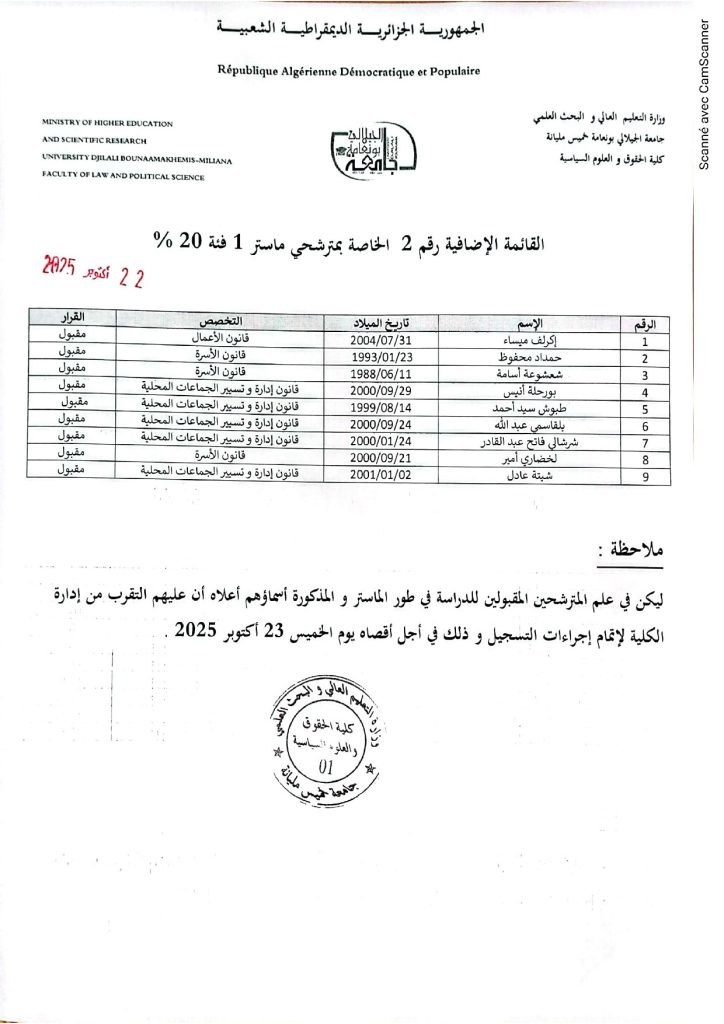 Liste supplémentaire n°2 des candidats au Master 1 – 20 %